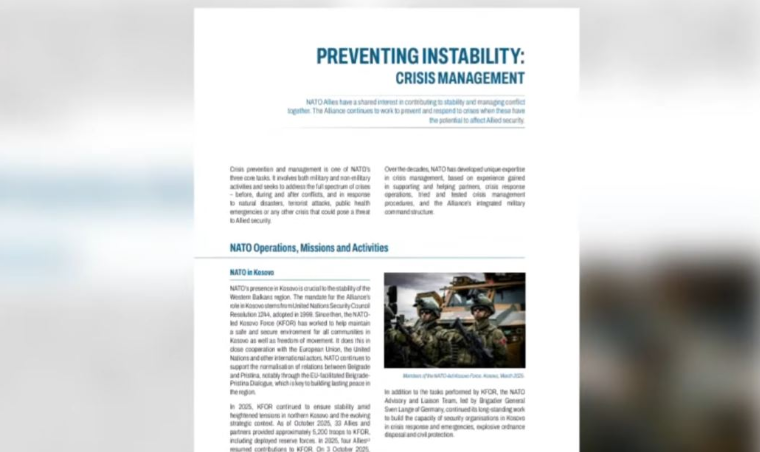 NATO-ja, thotë raporti vazhdon të mbështesë normalizimin e marrëdhënieve midis Kosovës dhe Serbisë, veçanërisht përmes dialogut të lehtësuar nga BE-ja, i cili është çelësi për ndërtimin e paqes së qëndrueshme në rajon.